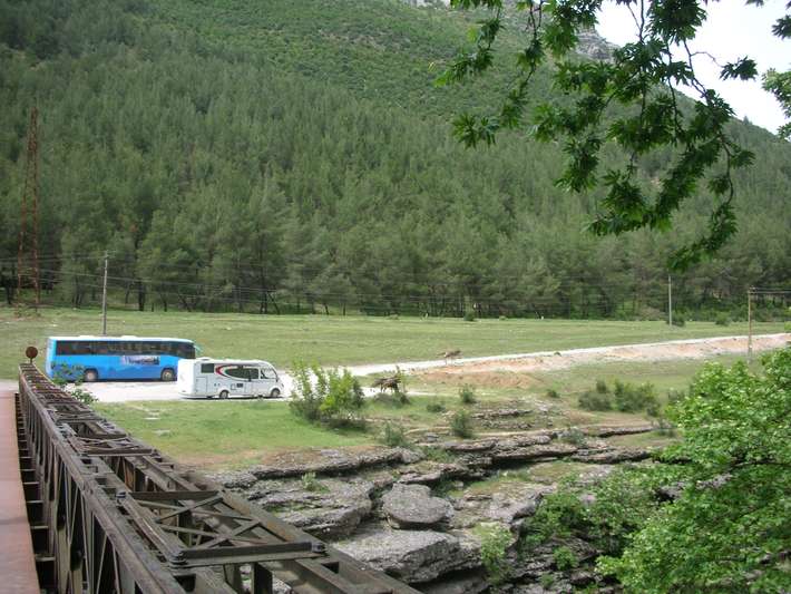 über die Brücke rechts auf dem Parkplatz - in Nachsaison bestimmten Ort - ist die Verwendung Restaurant geschätzt - frei nach dem Abendessen im Restaurant
