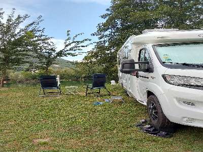 Kleiner Campingplatz neben dem Fluss Una - schmale Zufahrtsstraße - letzter Teil unbefestigt - ein paar Kilometer außerhalb von Bosanska Krupa - Zentrum 1km