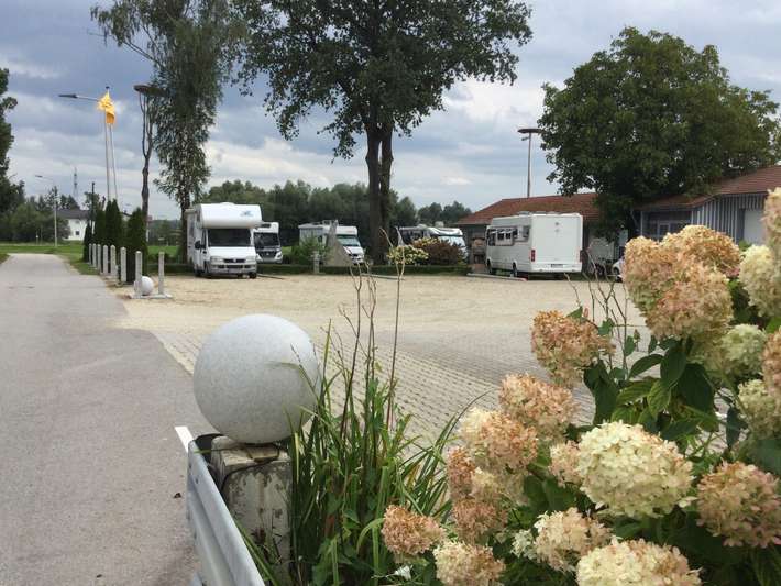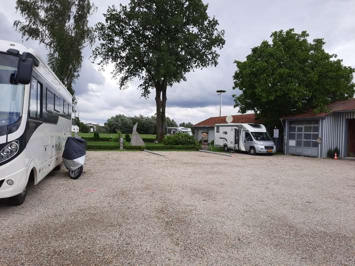 Wohnmobilstellplatz auf dem Parkplatz neben der Pension - Frühstück im Hotel möglich - Zentrum 3 km.