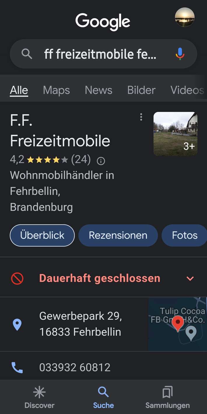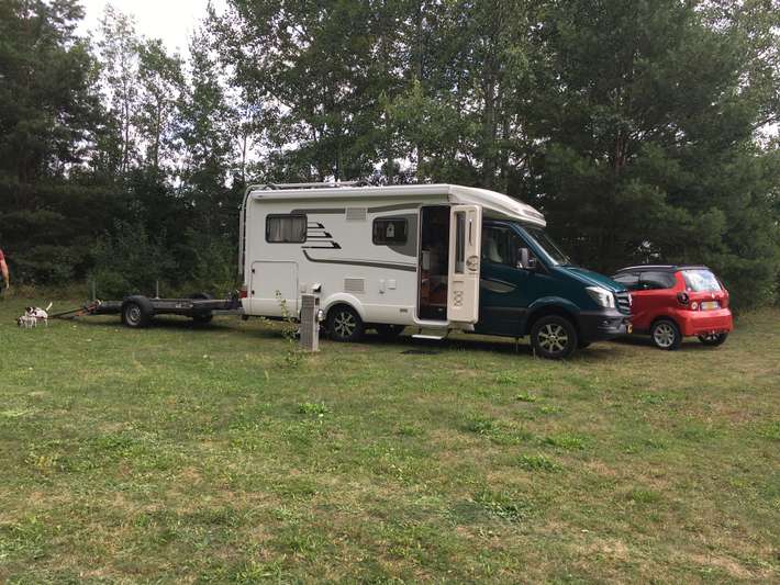 Platz bei Dethleffs-Händler für das Dorf im Industriegebiet an markierten Stellen - evtl. Nutzung von Sanitäranlagen innerhalb der Öffnungszeiten - Möglichkeit der Passanten gegen Bezahlung
