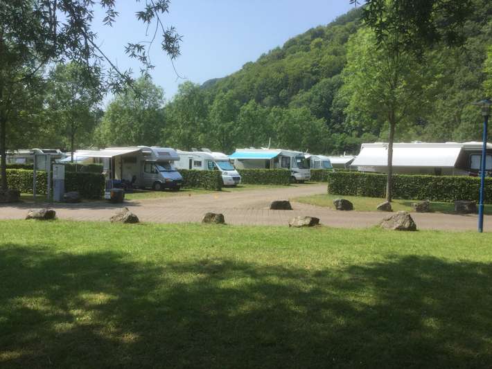 Zeichen "Freizeitanlage" - Folge Freizeitbad - Verkehr - Strom pro 2kWh - Brötchenservice - abgefülltes Gas Service - sani / Wasser Okt.-April geschlossen - Zentrum 2,5km