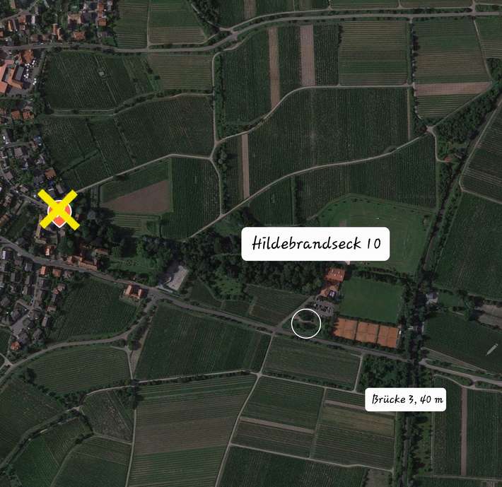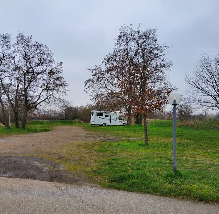 Einfacher Wiesenparkplatz an der Straße - Zentrum 300m