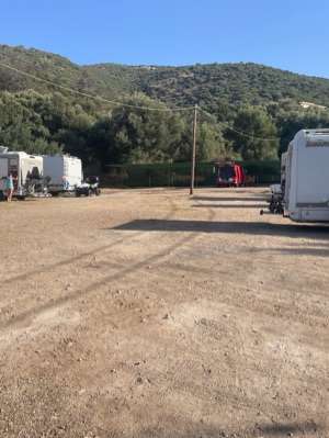 Sehr schön gelegener Stellplatz im Olivenhaine, ruhig, feste Wiese, ca. 280 Höhenmeter, sehr freundlicher Wirt, preiswerte und leckere Menüs