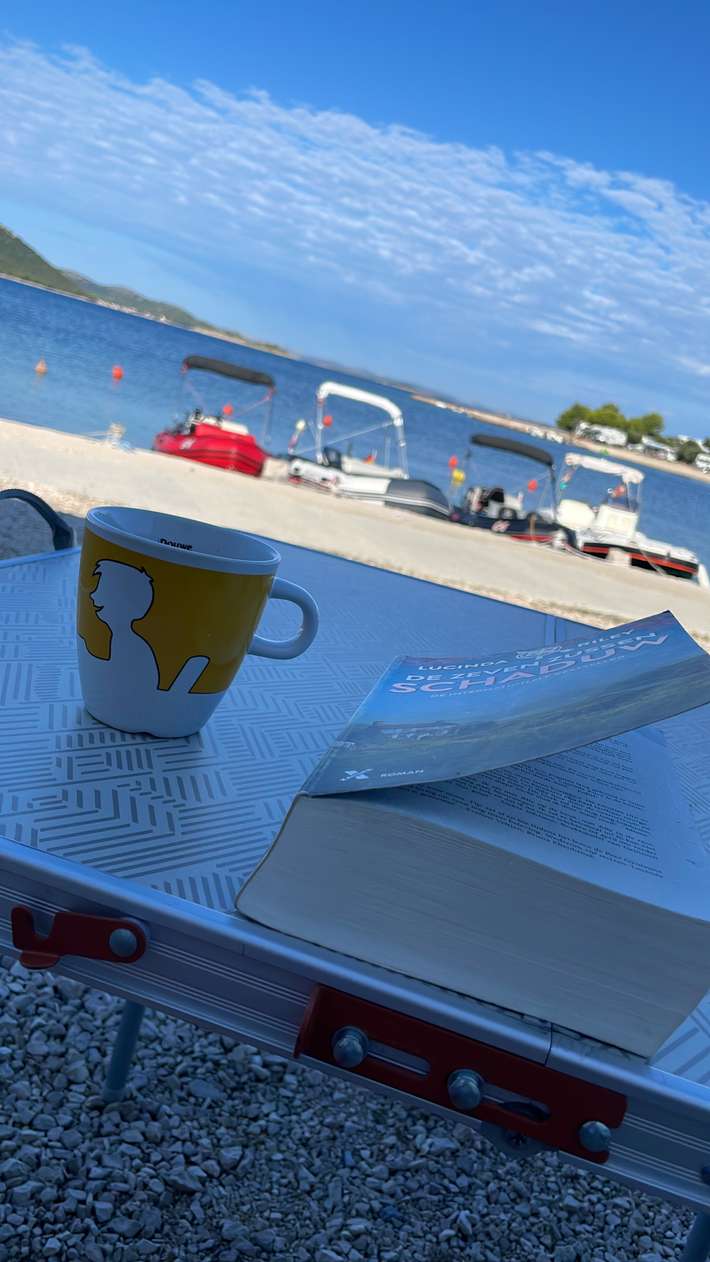 In den ruhigen Bucht direkt am Meer - mit Schotterterrassen - leicht abfallend - alle Orte auf dem Meer