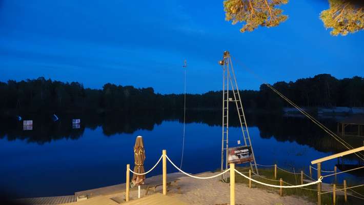 Camping mit Hütten am See - in Beberliņi Forest Park - Café mit Mittagessen Option - Wakeboardschule - Zentrum 5km