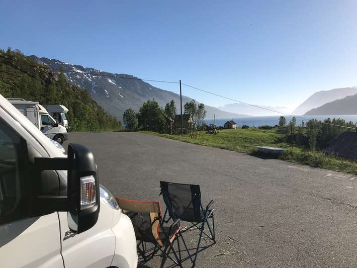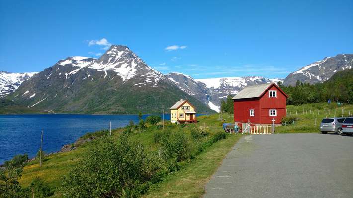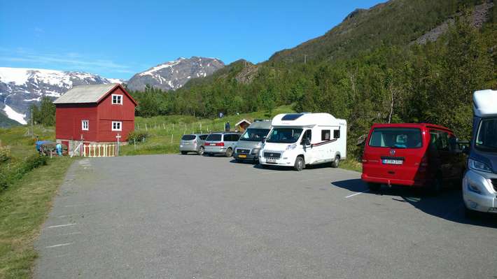 schöner Ort zum Fjord-befindet sich am Spieß Land genug Platz, um Reverse-Parkplatz zu Beginn der Wanderweg zum Innervikselva und Gletschers Øksfjordjøkelen Saltnes-Geschäfte/Zentrum 22 km