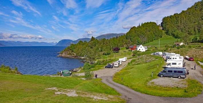 liegt am Sognefjord - gepflegt WC-Anlagen - Boot / Angelausrüstung mieten - Einkaufen / Restaurant / Zentrum 7km