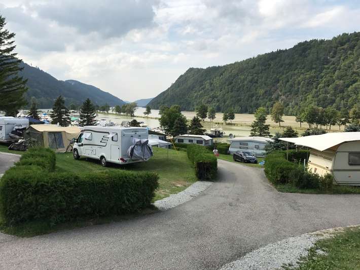 Terrassen zur Schlögener Schlinge - Blick auf der Donau - Marina - Supermarkt - Fahrradverleih - Haibach 8km