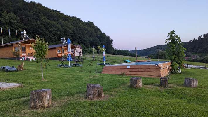 Campingplatz mit Blockhütten - Schwimmbad - Restaurant - Fahrräder ATV und Pferdeverleih 500m