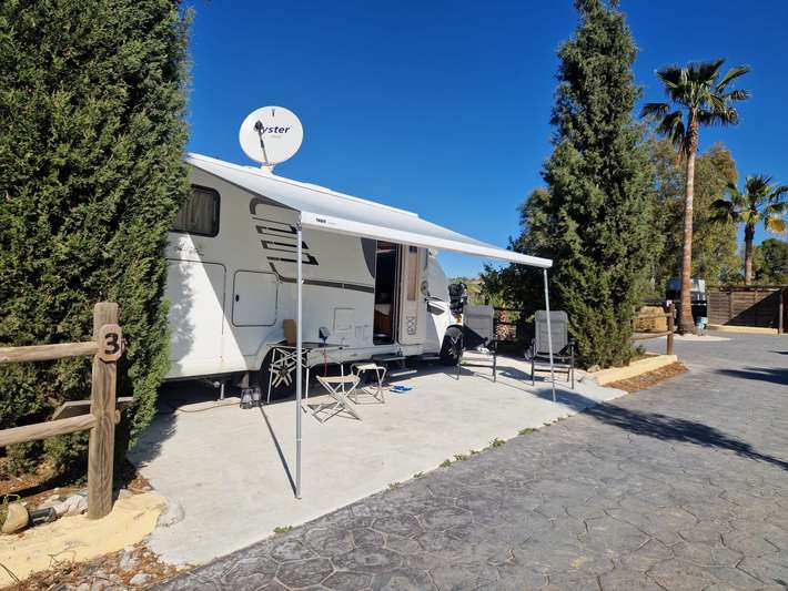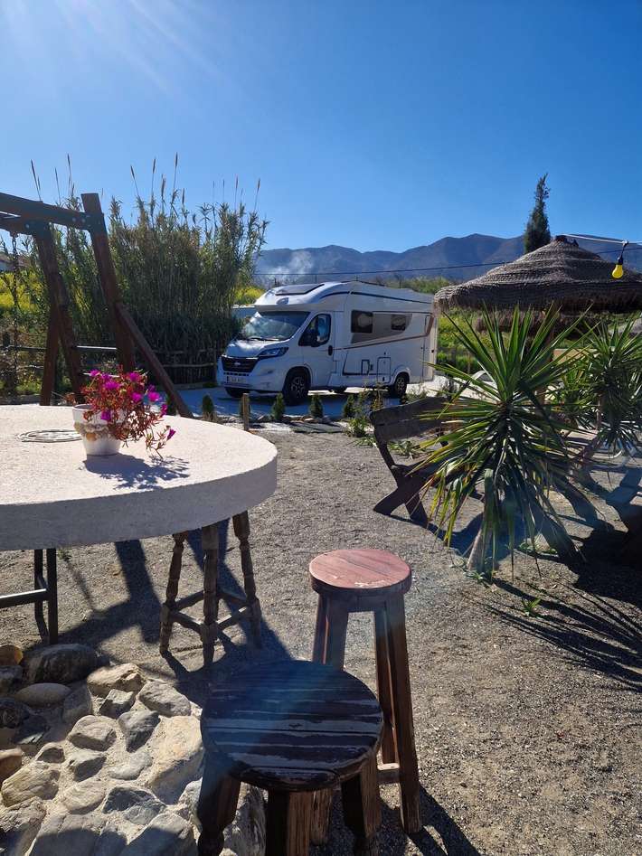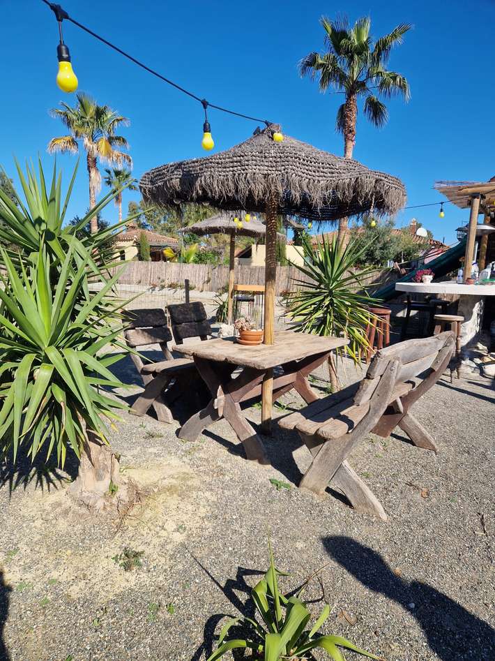 Charmante, kleine Campinganlage mit Outdoor-Fitnessstudio – Strandbar zum Entspannen, Sonnenbaden und gemeinsamen Essen – 6 private Stellplätze – Zentrum 2 km entfernt – Spanisch/Niederländisch/Deutsch/Englisch sprechend – Haustiere willkommen – ebenes Gelände – befestigte Stellplätze