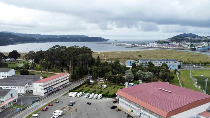 Wohnmobilstellplätze auf großem Parkplatz in der Nähe des Stadions – Zentrum von Viveiro 1 km entfernt