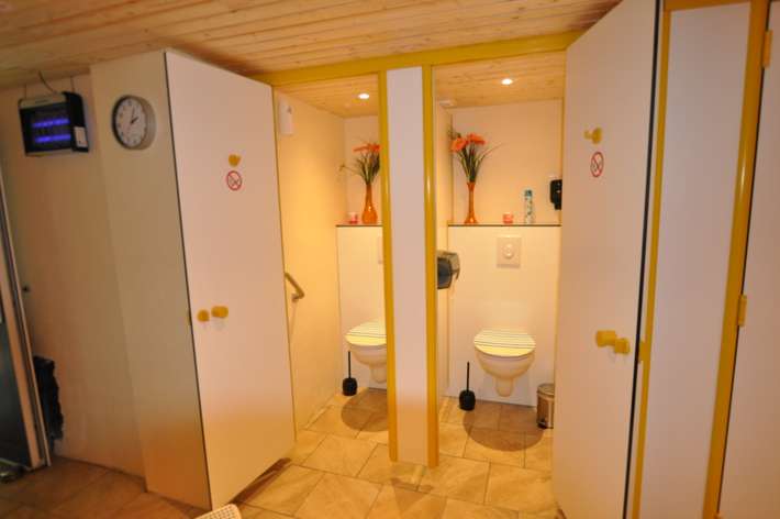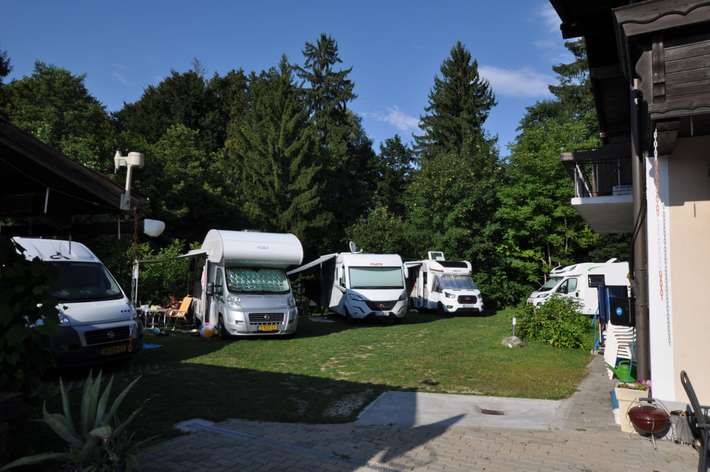 camper place - in the backyard of the holiday apartment house - shower and toilet closed at night - garden with heated swimming pool. - next to restaurant - bus stop in front of the door - center 2.5 km.