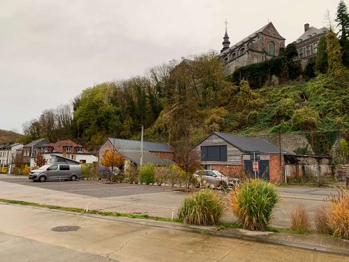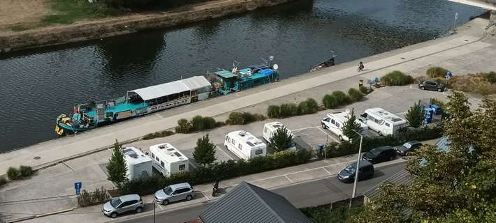 parking on the banks of the Sambre - use GPS coordinates - at the foot of the abbey of Floreffe - public transport to Namur - center 250m
