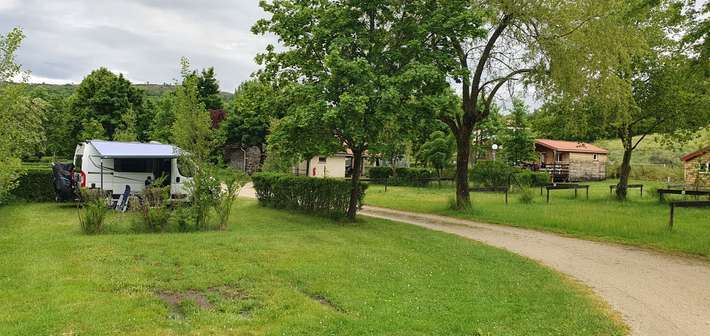 Camping on the banks of a river and a lake - green camping pitches, shady under the trees or sunny.