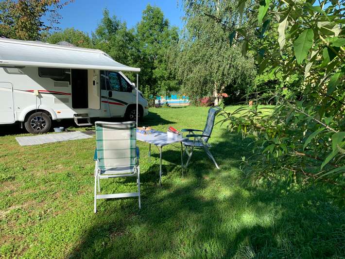 quiet plateau - camping close to a beach at Lac de Bairon - center with shop and bakery at 1 km - a number of camper pitches on gravel - free choice place possible, both sun and shade.