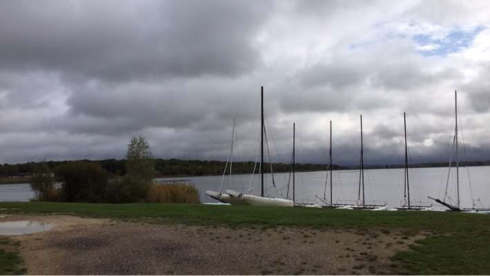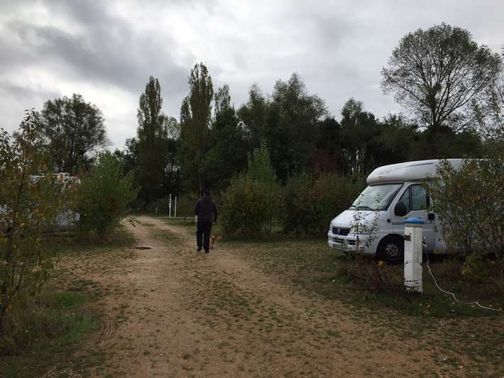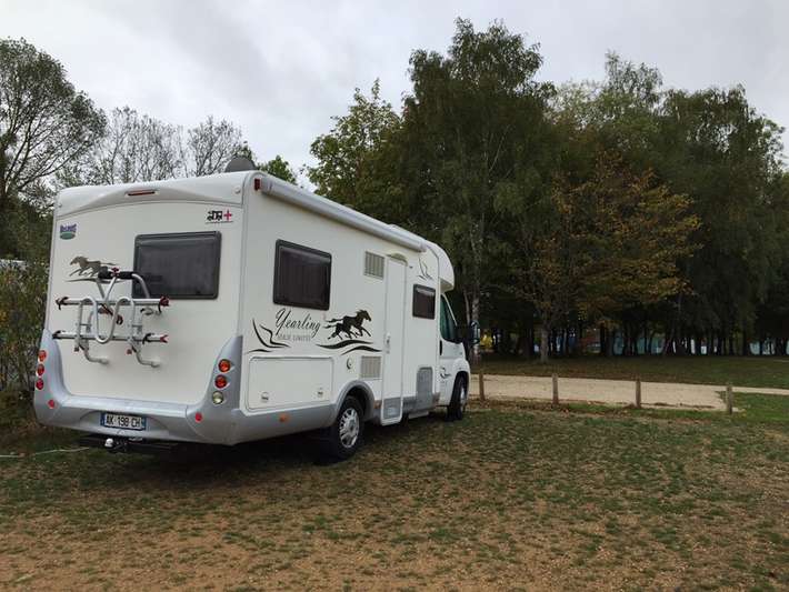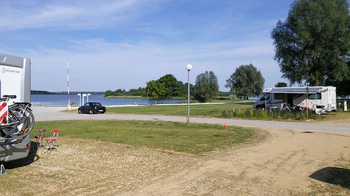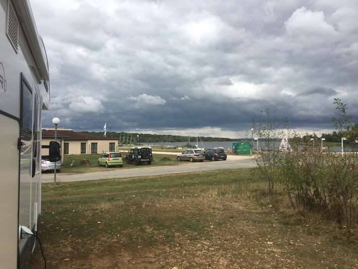 service station at entry Nonsard [site code 3974]-entrance fun park Madine Meuse, at the Lac de Madine-shade and view over the Lake-Baker comes in the morning along