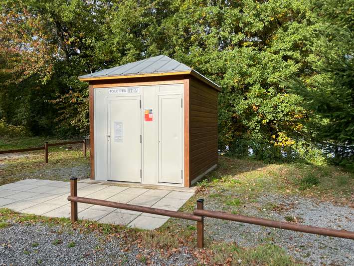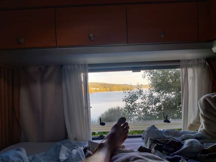 Parking space reserved for motorhomes at Lac de Vassiviere - right between sandy beach and marina.