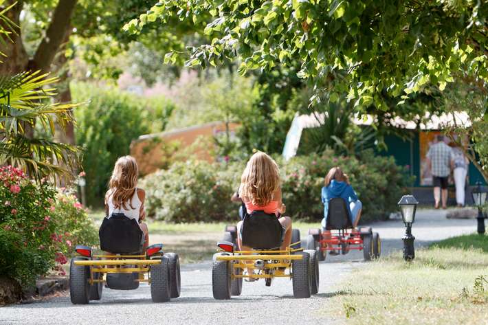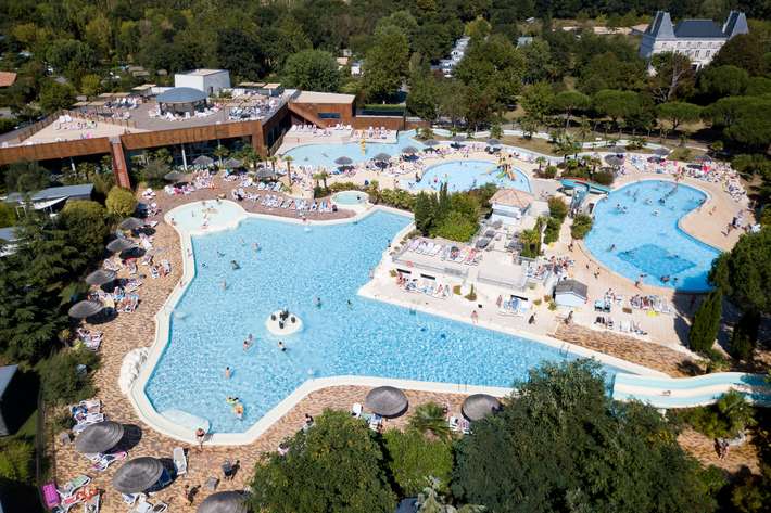 5 star campsite with modern cottages and large pitches - 2000m² aquaparc with river & water slides - Wellness & Fitness center with indoor pool, sauna, hammam, jacuzzi, massages and facials, fitness room and solarium - bike rental - riding school - tennis courts - kids club - snack bar - restaurant - bread service - surcharge for comfort and premium places - center 1,5km
