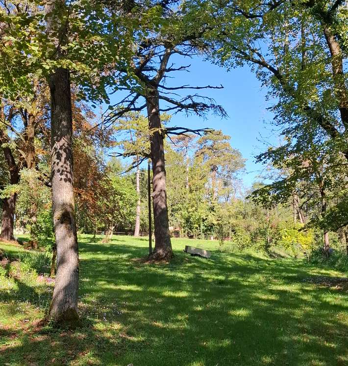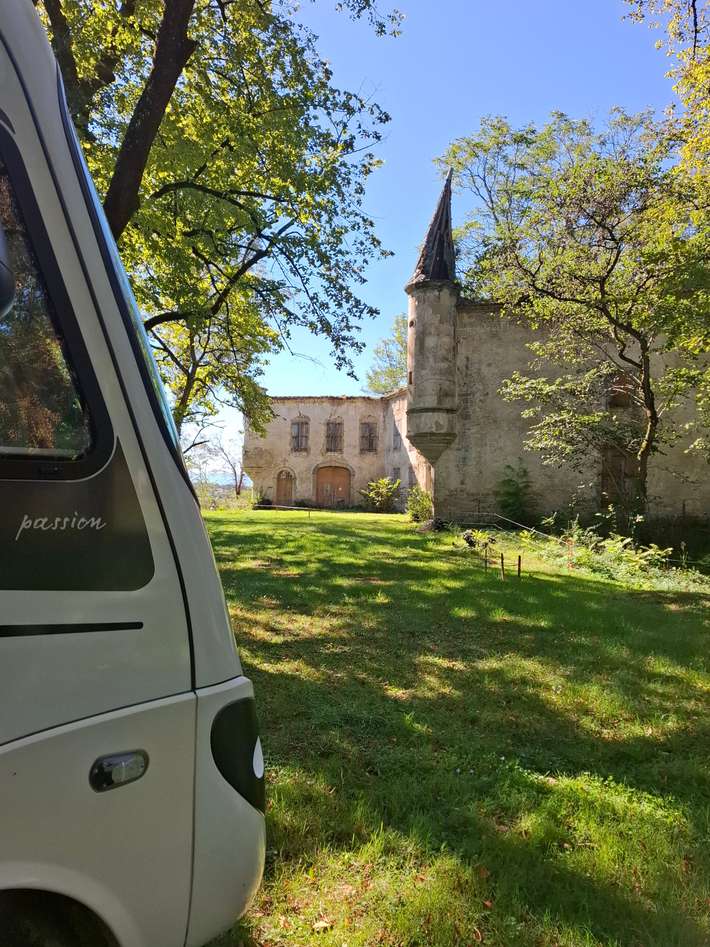 In a wooded park - use GPS coordinates - opposite ruins of a castle - quiet - view - center 500m