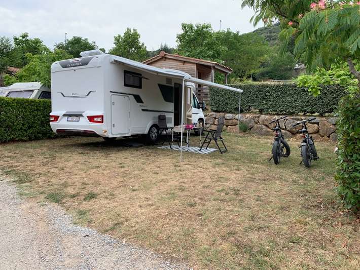beautiful, partly in an old Cherry Orchard, landscaped campsite on the river the Jaur-also places with private bathroom-quick-stop possible-swimming pool-snack bar-80 km long bicycle/walking path over an old railway Centre 3 km