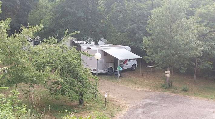 Well, nice campsite with stream, trees, sun, lots of shady spots, in a row. With terrace and menus. But it doesn't have the relaxed atmosphere and welcome of other (naturist) campsites. Part of the spots are only for tents. An unpleasant, snappy young employee pointed this out to us during our search for a spot. Too bad, we left after 1 day. €37.16. Empty chemical toilet in regular toilet... Or at the adjacent campsite €5...