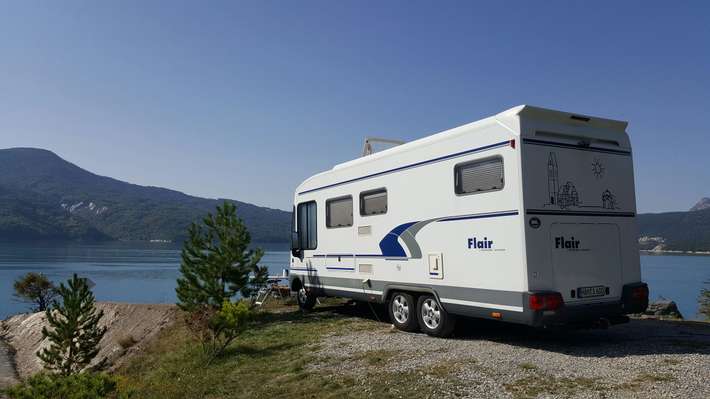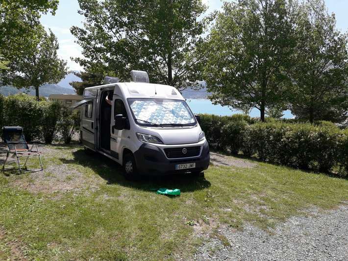 Large Campsite with chalets together with a reported 180 pitches. Undulating terrace, relatively flat. Direct access to Lake. Swimming pool, restaurant.