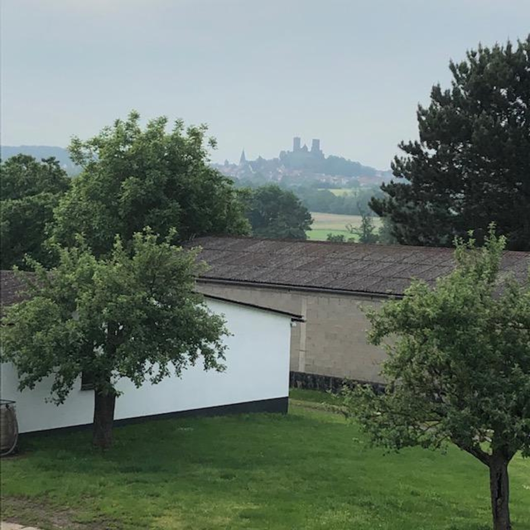 Camping on the farm Our farm is located on the outskirts of Münzenberg, surrounded by trees and nature. Our chickens look forward to seeing you. A power connection, toilet and fresh drinking water provide the necessary comfort on our mobile home site. Your four-legged friends are also very welcome. This is what you can discover with us: If time allows, you are welcome to drive a tractor or combine harvester with us. Munzenberg Castle and a zoo are nearby. The castle is just 1 km away and in the evening you have a wonderful view of it. The zoo is about 3 km away. Everything is wonderfully accessible by bike. The motorway exit Munzenberg A45 is also only 1 km away from us. We look forward to you!