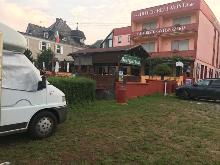Hotel with 3 pitches for campers. On lawn with direct view of the Rhine. Breakfast possible, restaurant and beer garden for cozy hours. Electricity should be put in shortly. V / E at 500 m.
