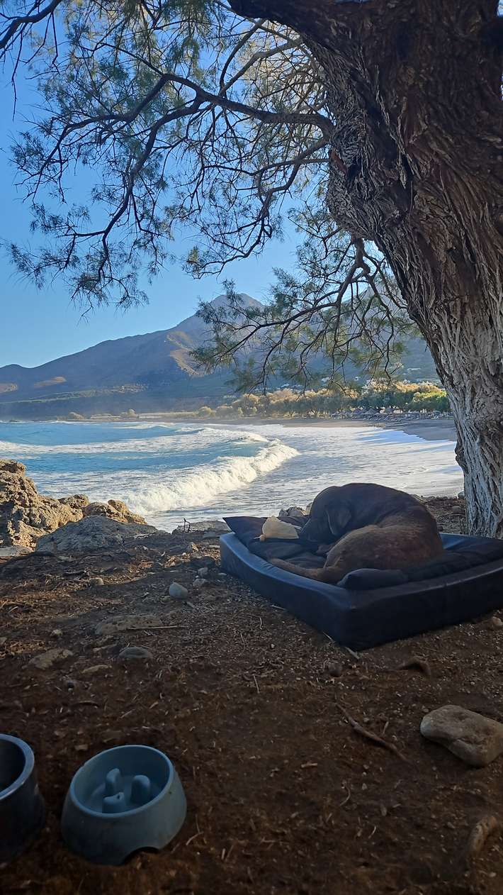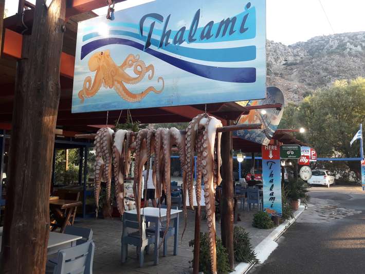 Lovely restaurant with a very cordial and enthusiastic owner. Superverse fish choose from the fridge, then expertly baked on the BBQ by the chef himself. This is a tavern where you do a detour. Are you staying with the camper for free in their garden. Sun beds and showers on the beach, toilet, water, WIFI is free. Beautiful sunset to admire from your table. Sea is a bit wilder.