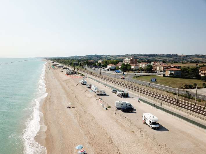 right on the sea - railway line is directly behind - center 2,5km