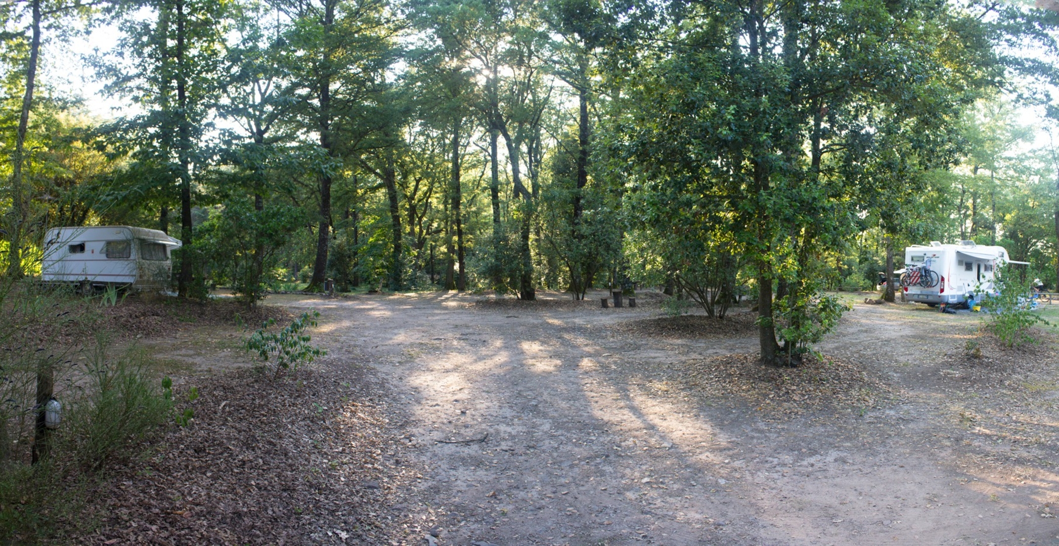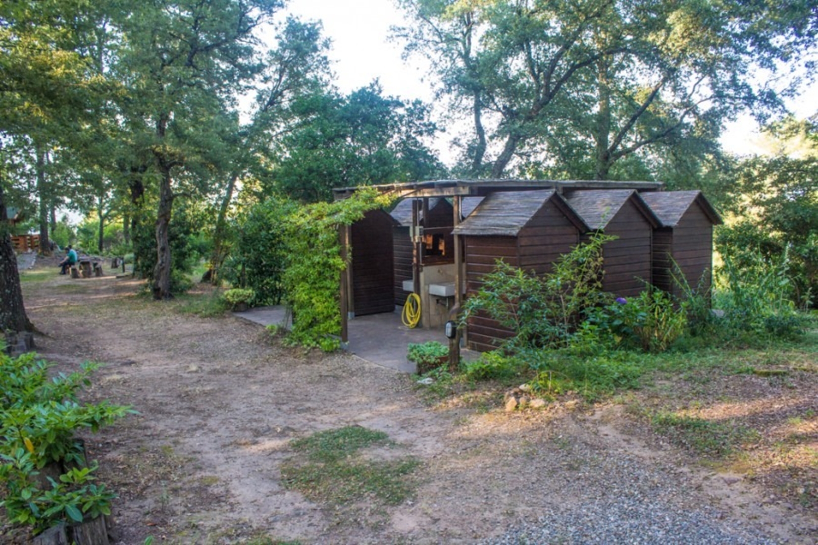 Nestled in a rural area at approximately 500 meters above sea level, the campsite lies in the heart of a lush forest of oak, chestnut, and holm oak trees. This authentic and pristine environment is not uncommon for spotting squirrels, roe deer, and wild boar, which inhabit the area. The small, well-spaced pitches blend harmoniously into the surrounding nature and are equipped with picnic tables and chairs made from recycled materials, as well as a shared barbecue area for pleasant outdoor gatherings. Despite the tranquility that defines the site, there is no shortage of opportunities for recreation. Children can enjoy slacklining, archery, or a game of ping-pong in the shade of the trees. For those who love outdoor sports, a volleyball court and a pรฉtanque court are available, ideal for challenges with family or friends. Numerous nearby trails also allow you to explore the countryside on foot or by bike, fully immersing yourself in nature. Visitors are asked only to respect the peace of the forest, maintain silence, especially at night, and not disturb the local wildlife or other guests, to ensure a peaceful and relaxing stay for everyone.