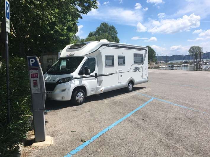 shower โฌ 0.50 for 3 min - free from 20:00 to 8:00 - after 1.50 per hour - on the coast with port and beach - center 500m
