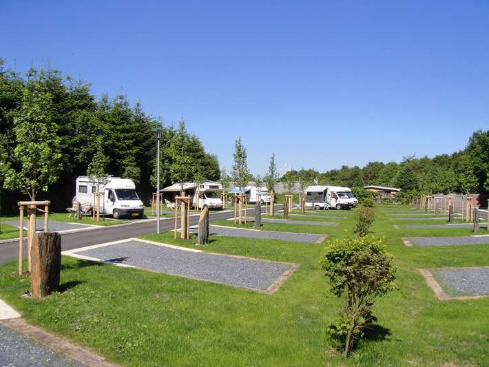 Additionally, there is a motorhome parking area located next to the campsite, featuring a paved section and a green strip. These pitches do not require a reservation.