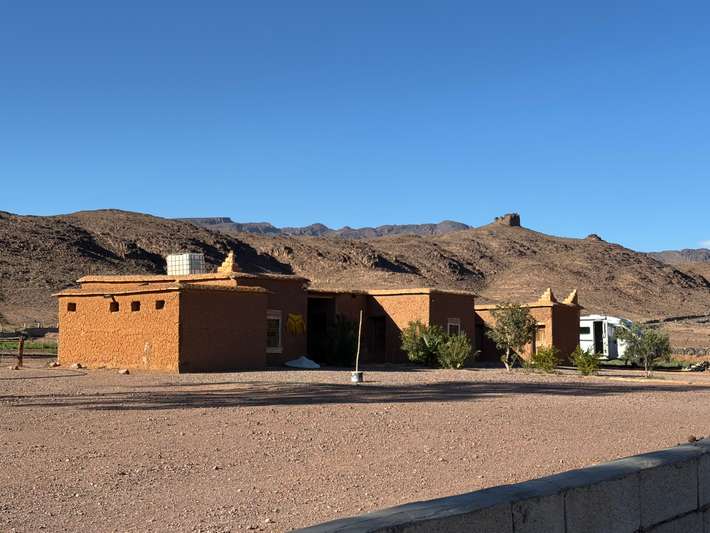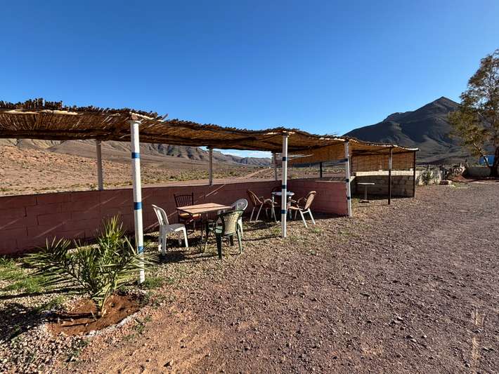 easy camping at a auberge-simple plumbing-wonderful views of the mountain range Bab n'Ali