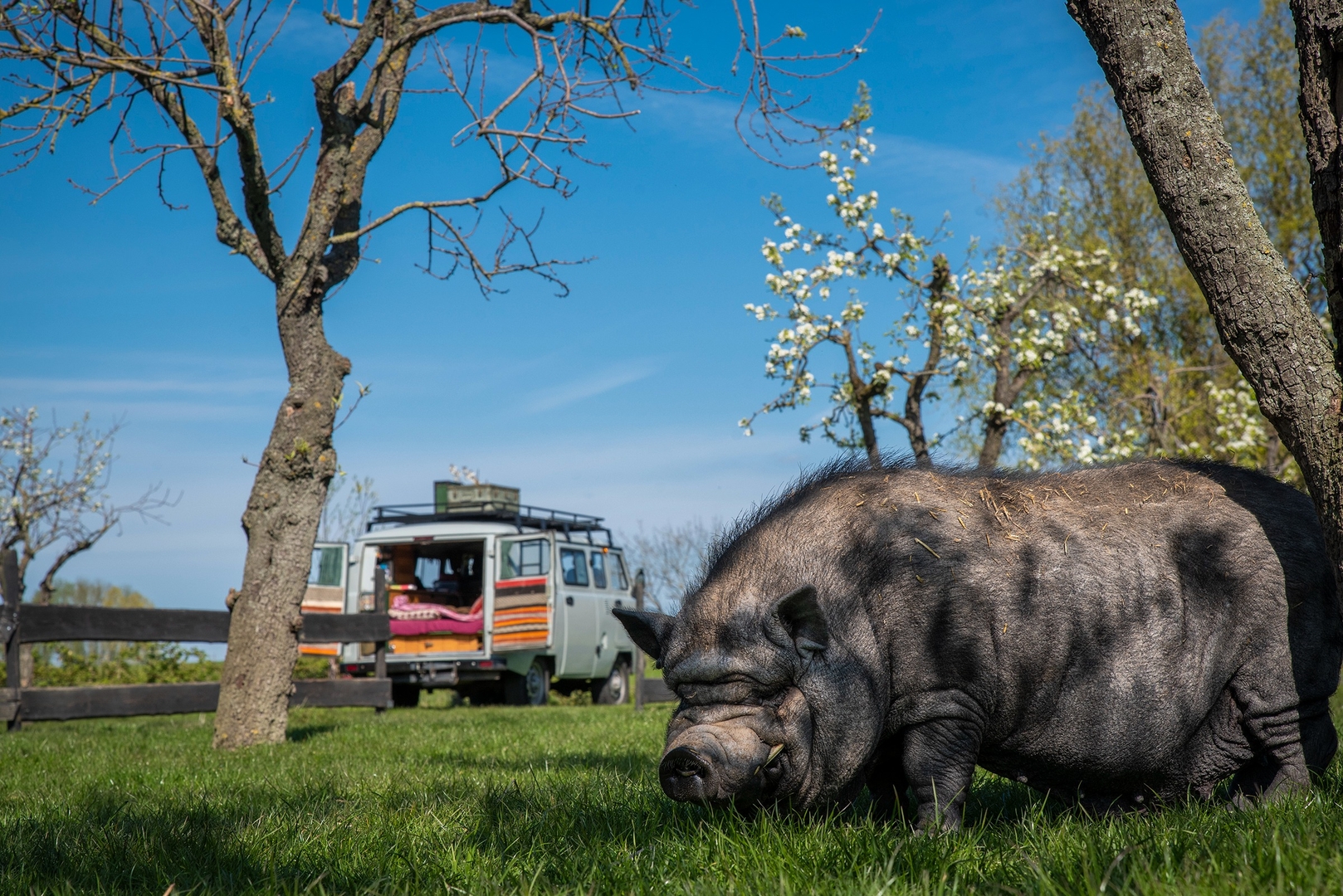 Het wordt NOG LEUKER ! door een lieve loslopende ezel, wat bruine schaapjes een stel kippen en kuikens een poes en een leuke speelse hond die daar gewoon vrij rondlopen, er hangen al sfeervolle lichtjes aan de bomen , en aan van alles is gedacht.