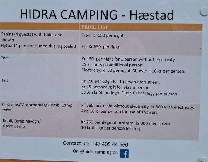 Hidra Camping offers a swimming pool, a playground, a marina, security measures, illuminated areas, grass surfaces, waste water discharge, toilet facilities, showers, laundry facilities, WiFi, bread service, and bicycle rental.