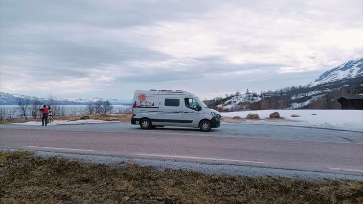 nice alternative to the E6 - Wildernessweg [Villmarksveien] from Korgen road 806 to Hattefleldal, from Bleikvasli road 331/291 to Hattefjeldal - just over the bridge a picnic place - view over Rossvatnet