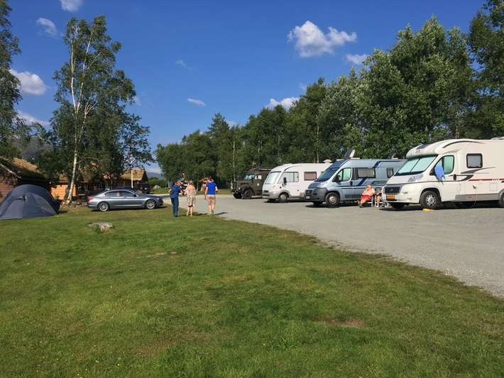 close to the E39 - on a river - spacious pitches - boat rental - canoe rental - center 400m