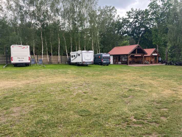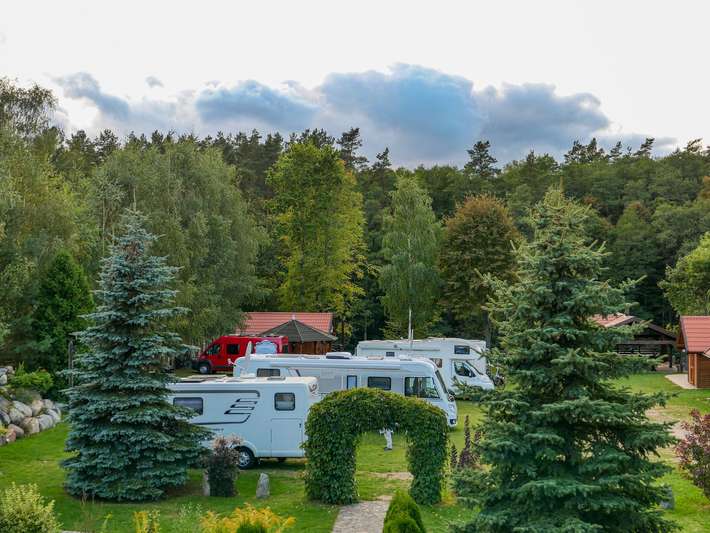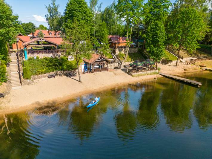 on the bank of the Krutynia River - Pisz forest view - partial shade - river known for fish, crystal clear waters and a kayak route.