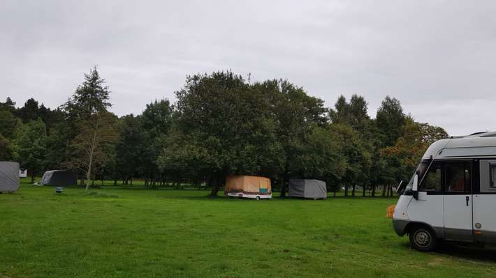 Camping in pine forest at beach - center 500m