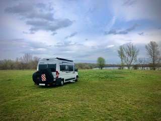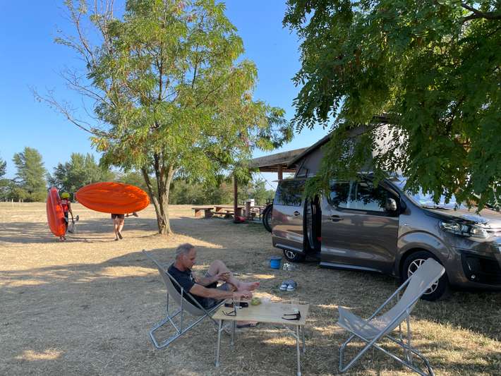 Parking at hotel on river island in the Danube