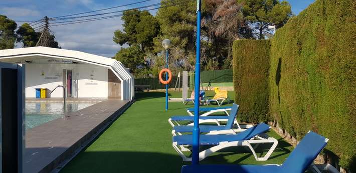 (1.5km), public transportation at the campsite (0.05km), shopping possibility (0.8km), bread service, camp shop, golf course (5km)