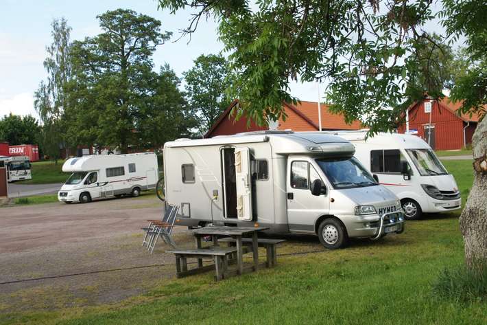 Caravan at the first gates of the Gรถta Canal - pressure in summer - harbor office open in May / September - center 300m