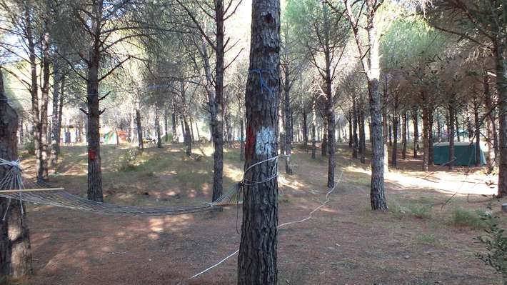 camping in the woods near the harbour-sandy beach-entrance directly links for the landing stage of the ferry