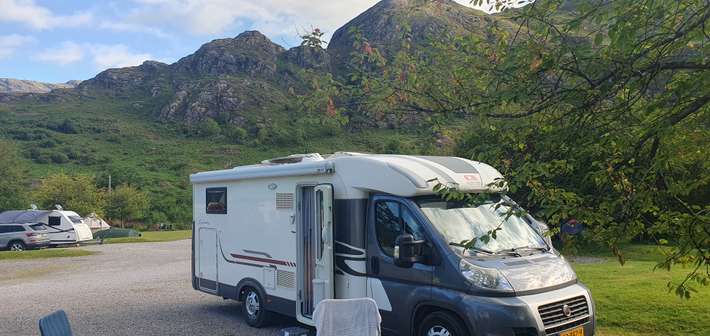 small campsite on the A87 - use GPS coordinates - reception at the gas station - after signing you drive behind the gas station to the entrance of the campsite - quiet area - center 2okm