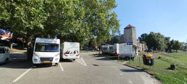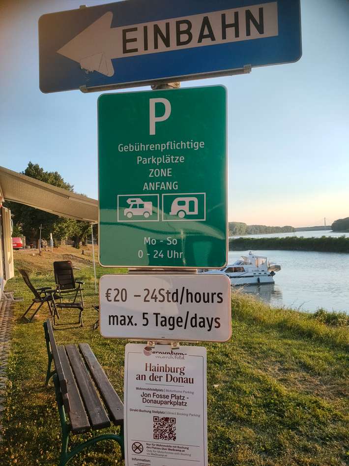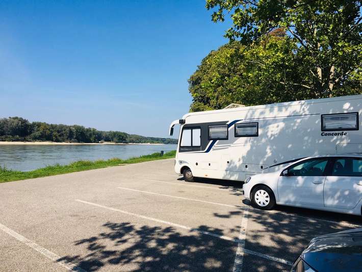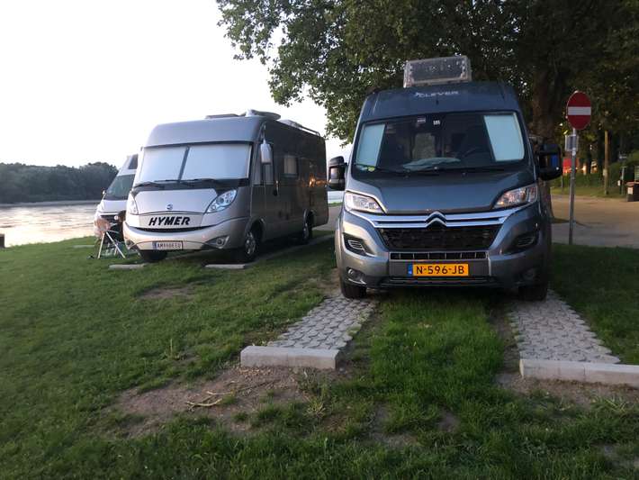 Agradable aparcamiento sin servicios a lo largo de las orillas del Danubio. Autobús a Bratislava.