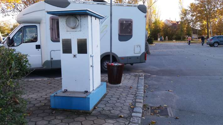 Punto de descarga libre para cassette y aguas grises (con cubeta) -. Sin agua potable - sin pernoctación - solo autobuses