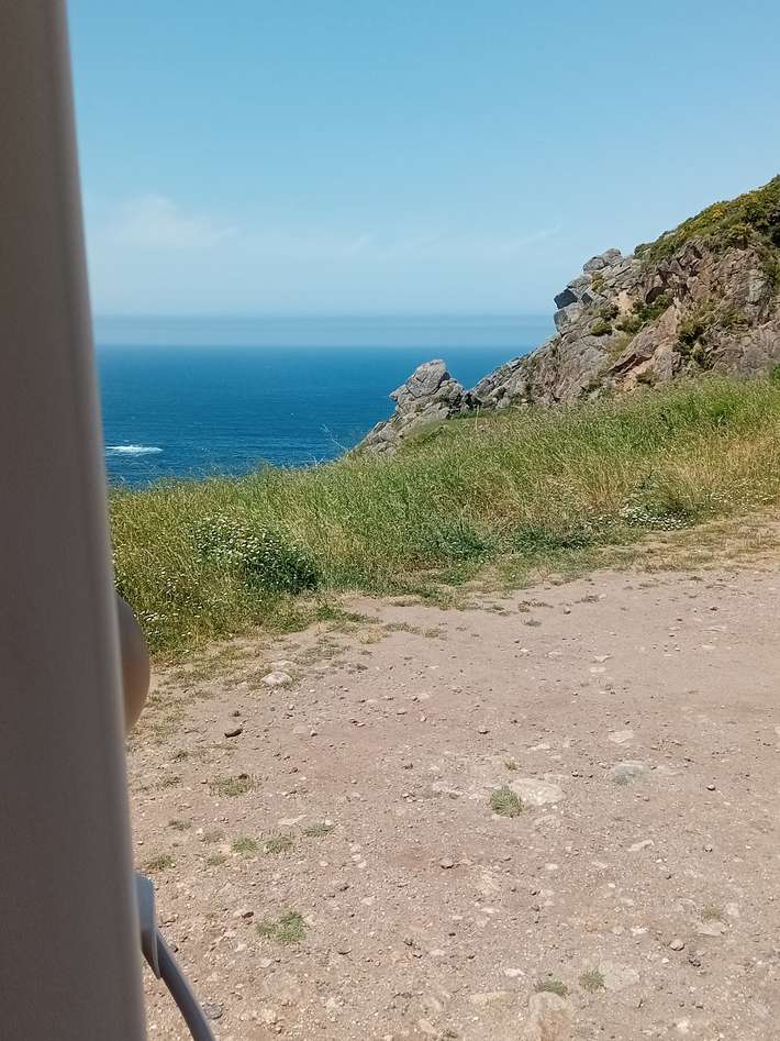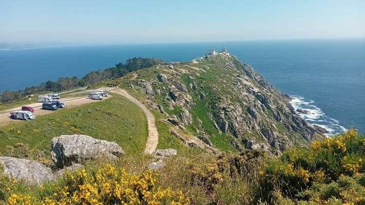 Estacionamiento AC445 cerca de la salida del cementerio - como alternativa a una gran autocaravana distante de 850m en el faro de Fisterra [lleno de gente en temporada alta] - bastante plano - mesas de picnic y agua de manantial natural [Fonte Cabanas] - muchos automóviles de pasajeros durante el día - en gran parte libre de 17ut - centro 2km