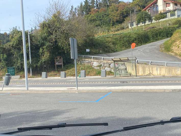 Estacionamiento público a lo largo de la carretera especialmente para campistas - use coordenadas de GPS - ubicado en diagonal frente al restaurante Oliden Jatetxia - camino a lo largo del río hasta el pueblo - mucho ruido de tráfico - centro 2 km