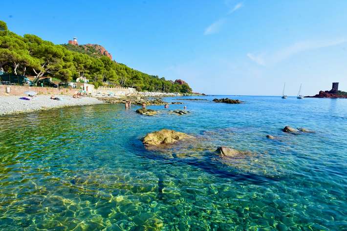 Ven a descubrir nuestro camping en un pinar al pie del Cap Dramont y de los montes Esterel. Disfruta de unas vistas impresionantes de la isla de Oro y de las aguas turquesas del Mediterráneo, que contrastan con las rocas rojas de los acantilados.